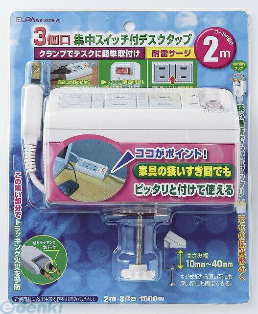 (LINEクーポン有)朝日電器 ELPA WB-DS32B-W デスクタップ WBDS32BW 集中スイ・・・