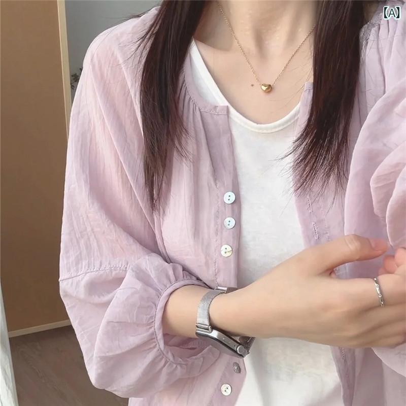 トップス 冷房対策 肩掛け 長袖ガウン Vネック ブラウス 春夏 シー・・・