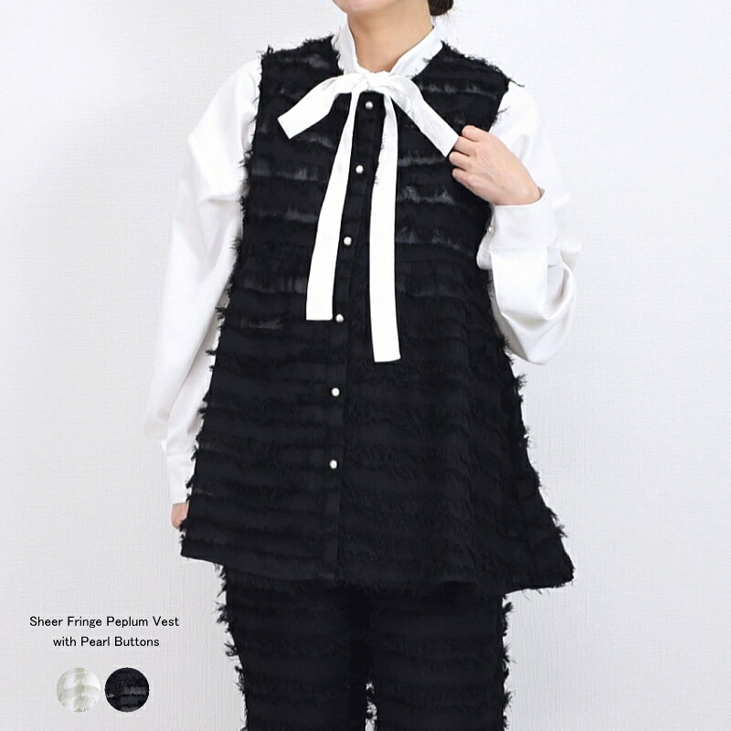 シアーフリンジパールボタンペプラムジレ ベスト セットアップ・・・