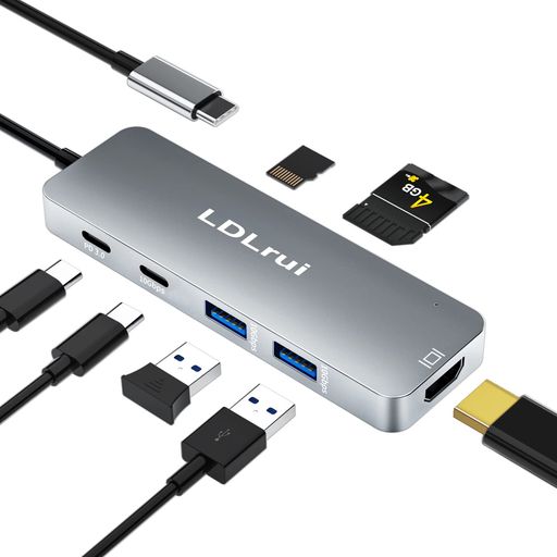 【7-in-1USBCハブ】1つのUSB-Cポートを7つのポートに変えます。4KHDMIインターフェース、3.5mmマイク/オーディオ、100WTypeCPower高速充電インターフェース、2・・・