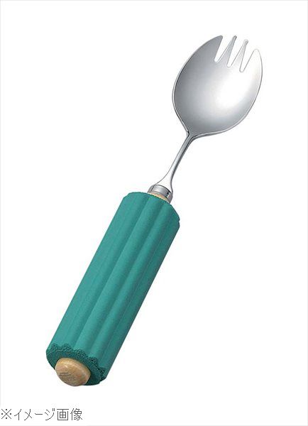 木製 丸 ハンドル・スポンジ付 スポーク大(R-3)●自由自在に上下,左右、自分に合わせて手で曲げて使えるスプーン,フォーク。●木製ハンドルで手に優しいスポンジをセットしてあり、握力の弱い・・・