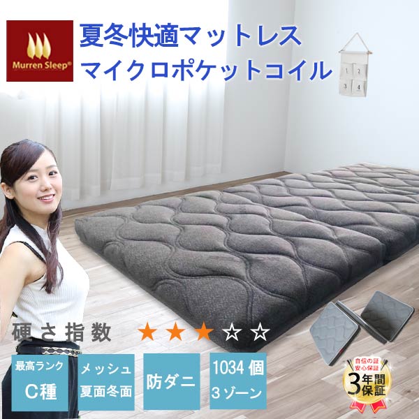 繊細な体圧分散 ポケットコイル マットレス 【予約12月末】 シング・・・女性に優しいマットレス をコンセプトにMURREN SLEEPPは商品開発を行っています。 ■サイズ SS W910 D1800 H900mm 814個 S W970 D1950 H900mm 1035個 SD W1200 D1950 H9・・・